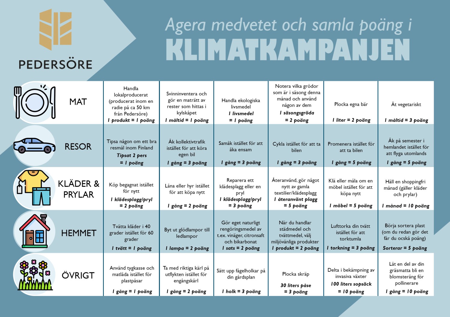 On pistekortti hukassa? Voit ladata sen tästä: Toimi tietoisesti ja kerää pisteitä ilmastokampanjassa, PDF, 7,6 MB.